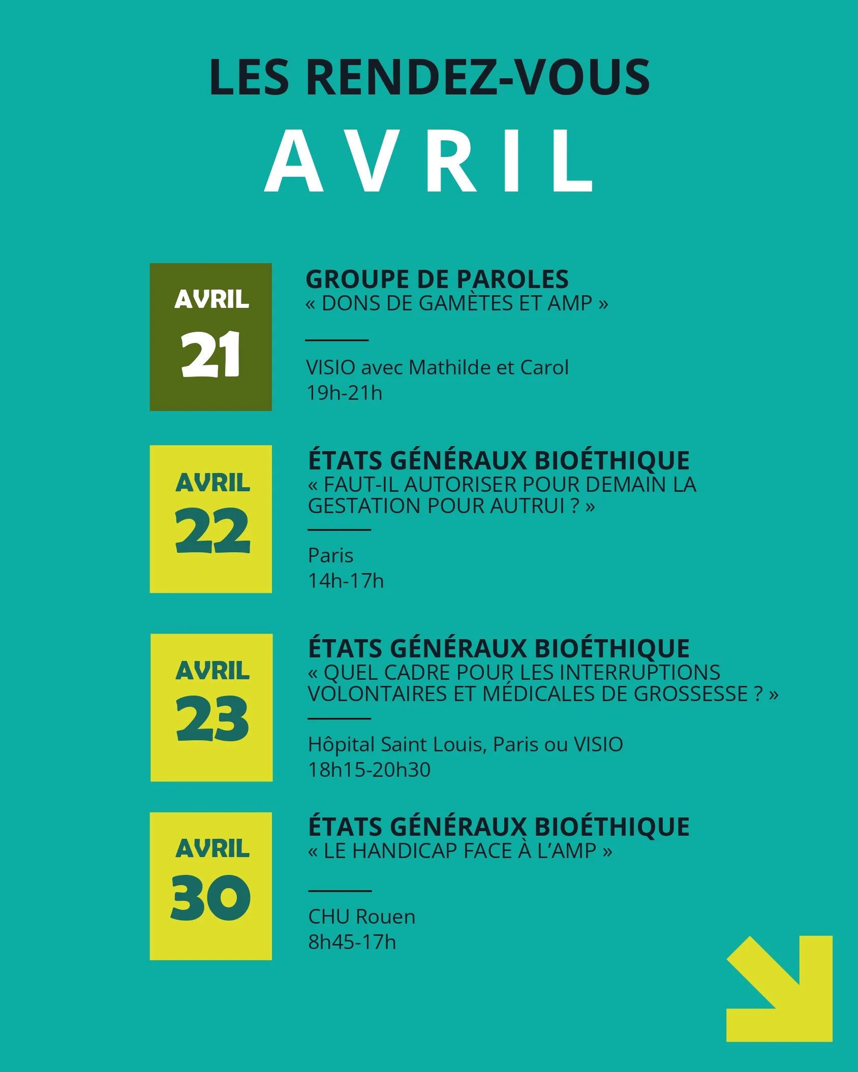 Events in Paris and in the region await you throughout the month to talk a little more about infertility, to be by your side, to listen to you but also to bring back a little sweetness in these journeys with beautiful cultural moments.