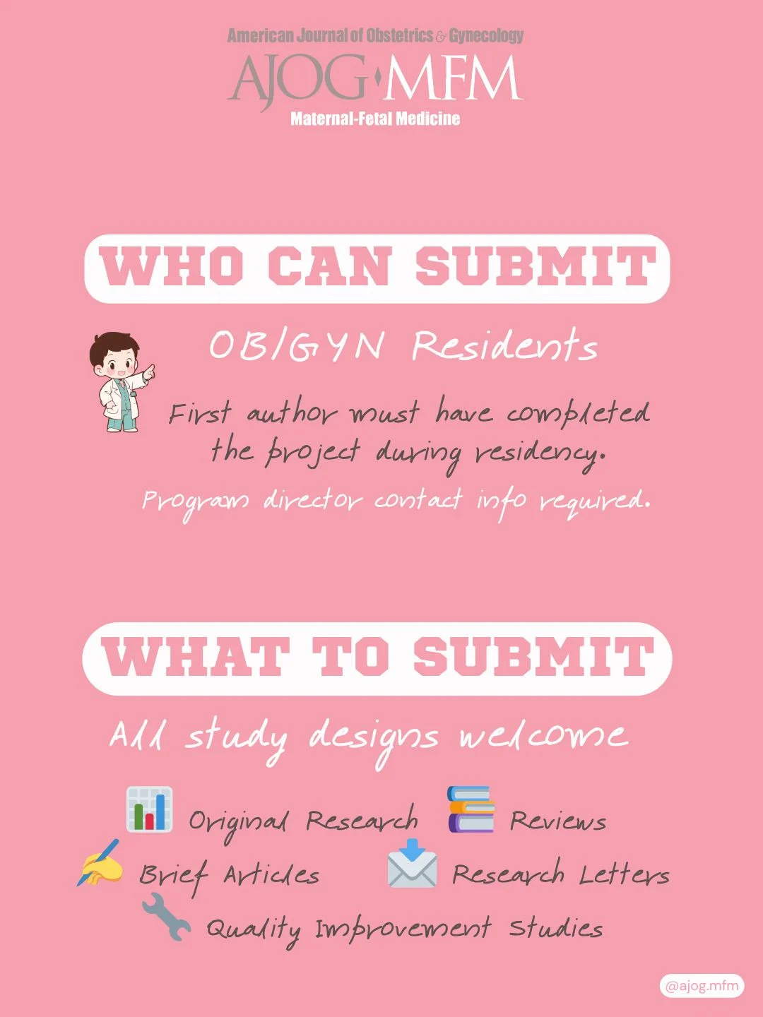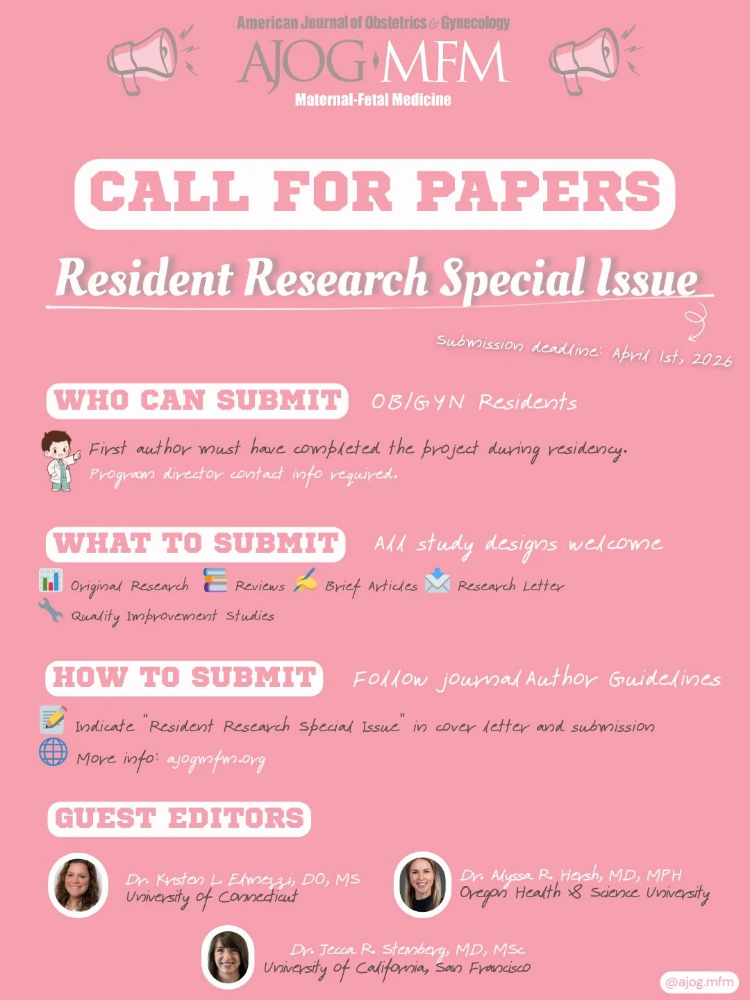 The submission deadline for the AJOG MFM Resident Research Special Issue has been extended to April 10, 2026.