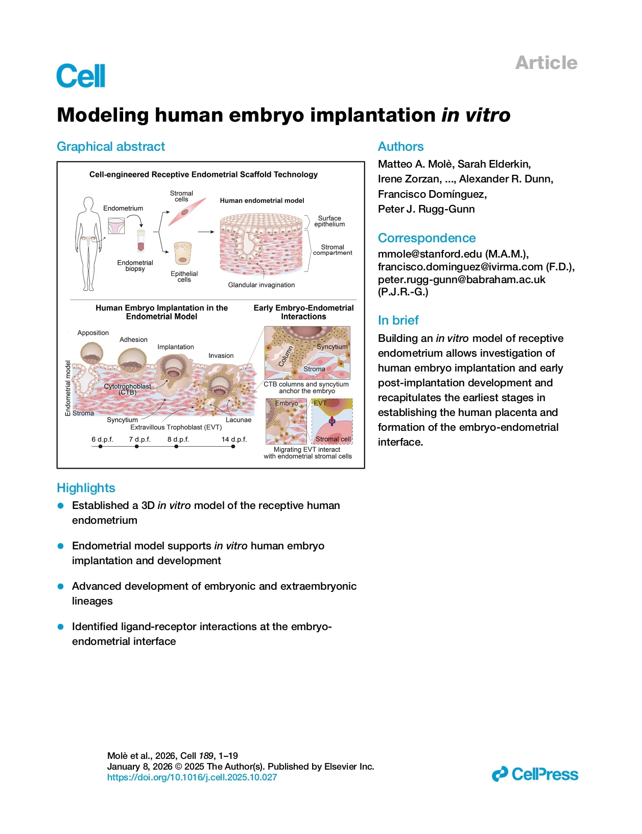 “Embryo implantation has historically been one of the most difficult processes to study in humans. A recent paper published in Cell describes a key breakthrough: an in vitro model of functional human endometrium capable of allowing the implantation of early human embryos.