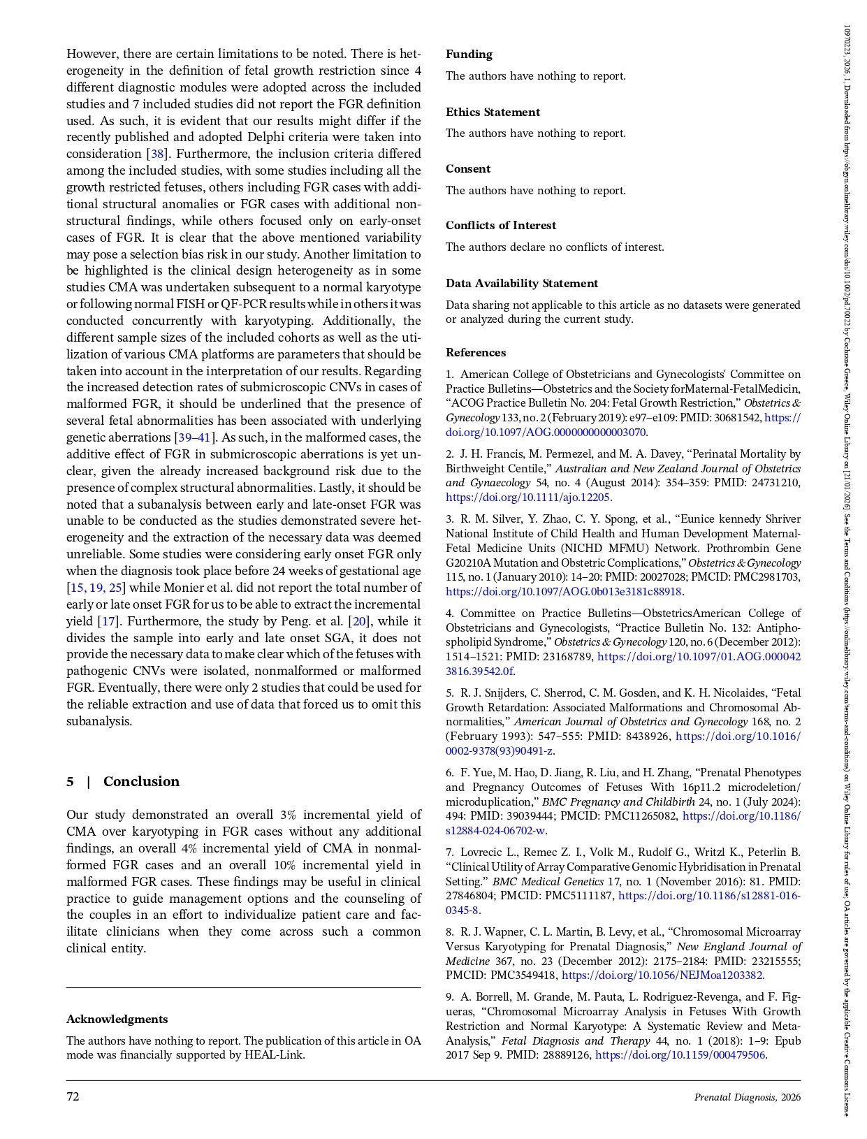 “I’m pleased to share our recent systematic review and meta-analysis published in Prenatal Diagnosis, evaluating the incremental diagnostic yield of chromosomal microarray analysis (CMA) over conventional karyotyping in fetuses with fetal growth restriction (FGR).