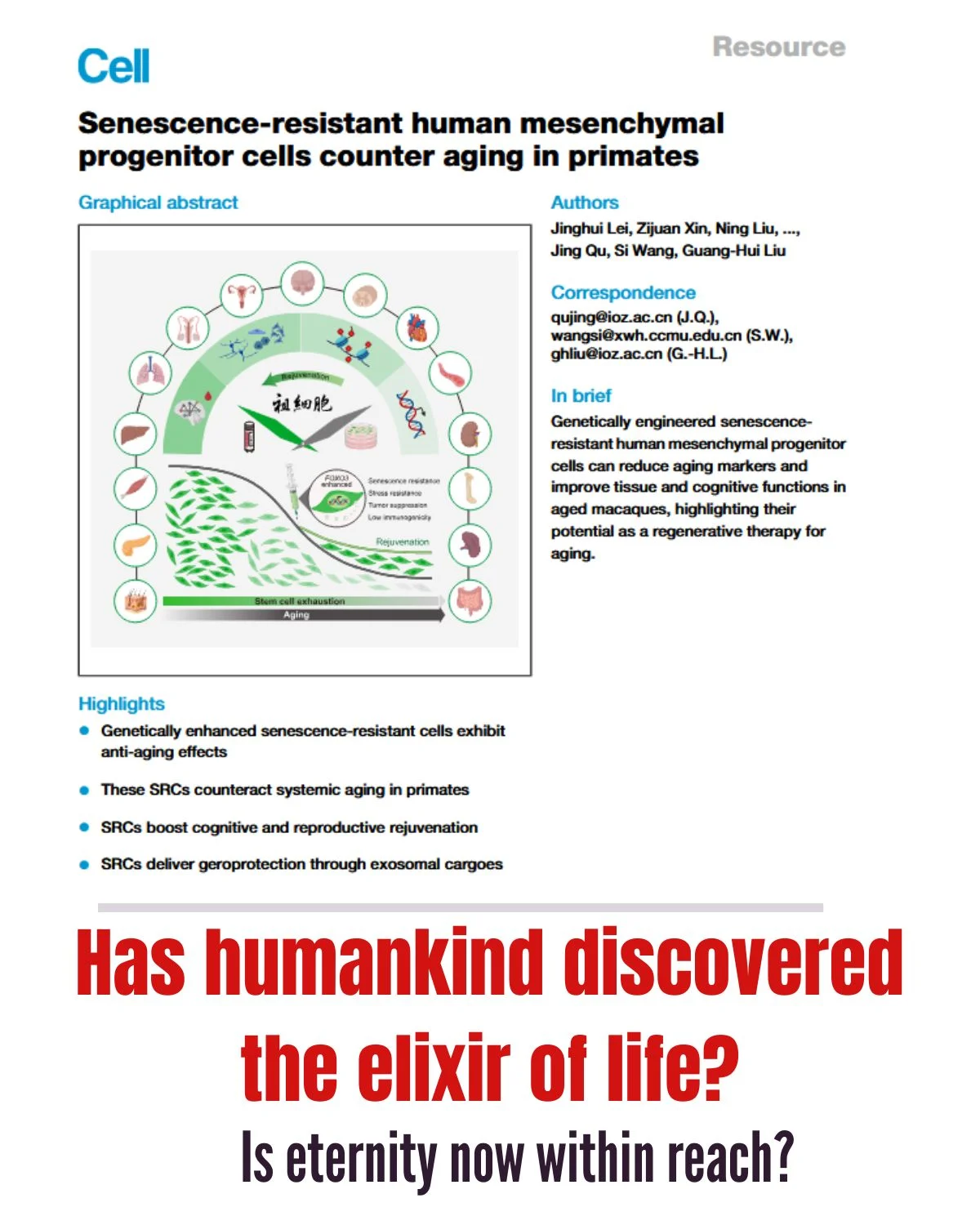 They successfully used genetically engineered, senescence-resistant human stem cells to partially reverse aging hallmarks in primates.