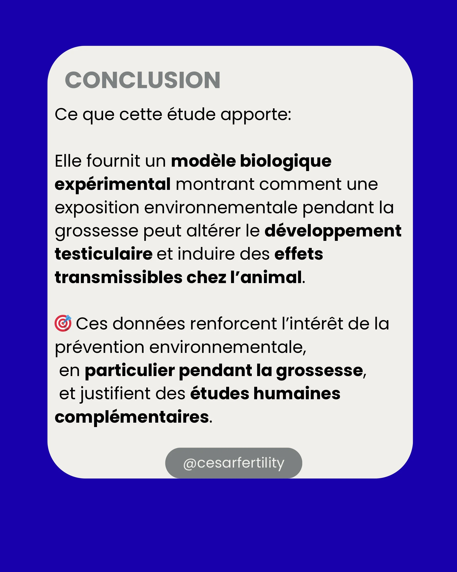 - These results are not directly transposable to humans, but they provide a useful biological model for understanding how certain environmental pollutants can affect reproduction.