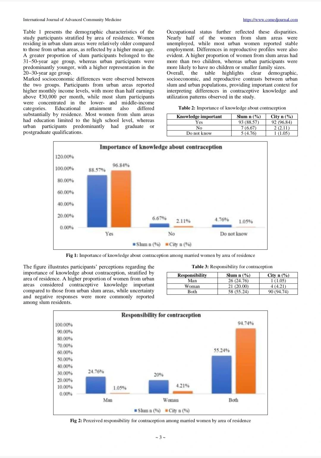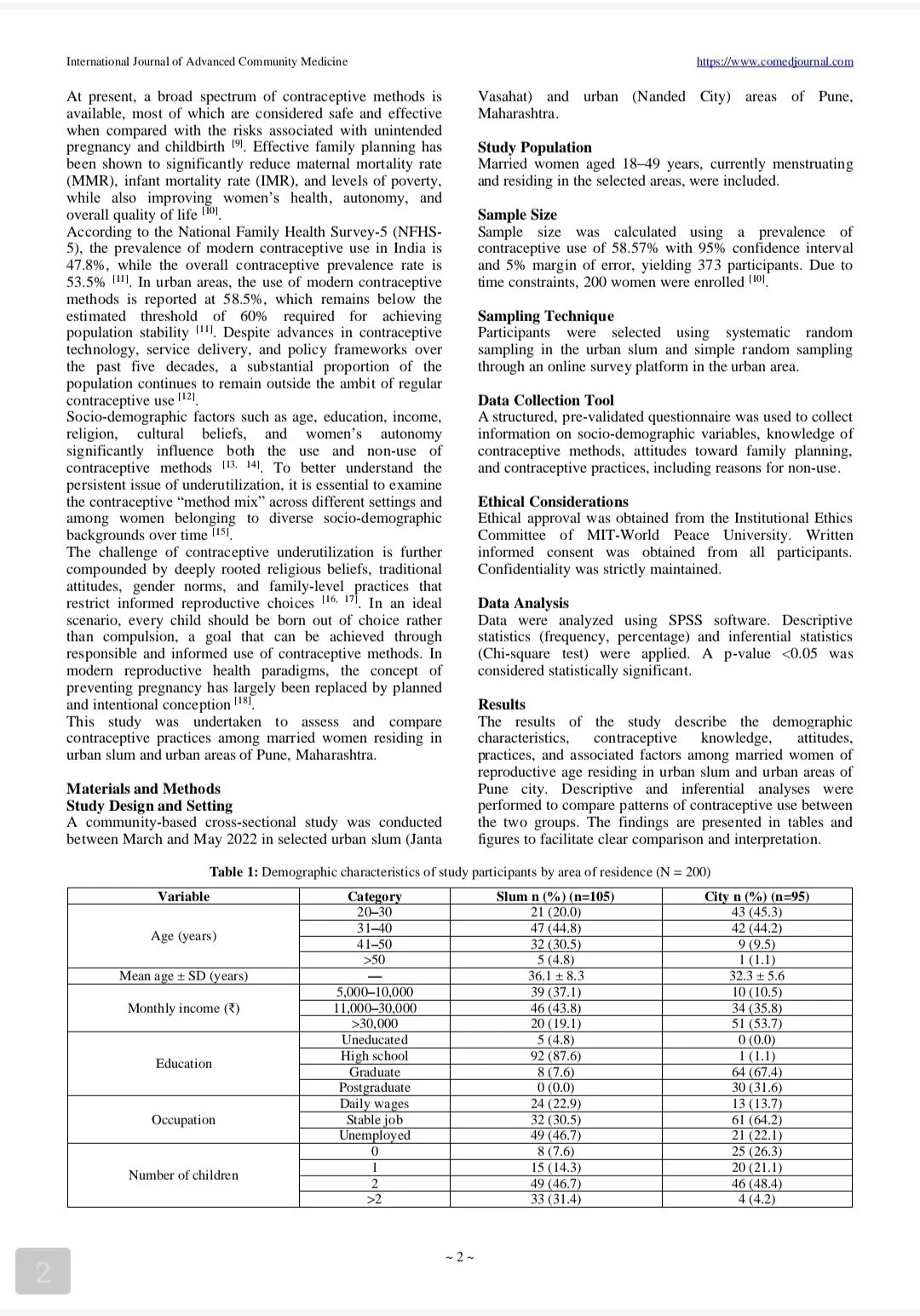 “I am pleased to share our recent publication in the International Journal of Advanced Community Medicine: ‘Prevalence and Determinants of Contraceptive Use among Married Women of Reproductive Age in Urban Slum and Urban Areas of Pune, India.’