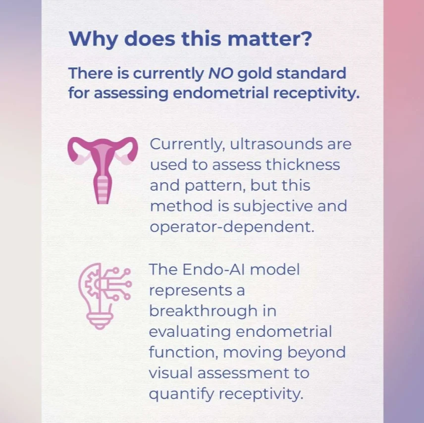 “This week we’re digging into an ASRM2025 abstract demonstrating that our AI model for endometrial receptivity assessment can objectively score the endometrium using ultrasound images to predict clinical pregnancy and live birth outcomes across patients with different prior pregnancy histories.