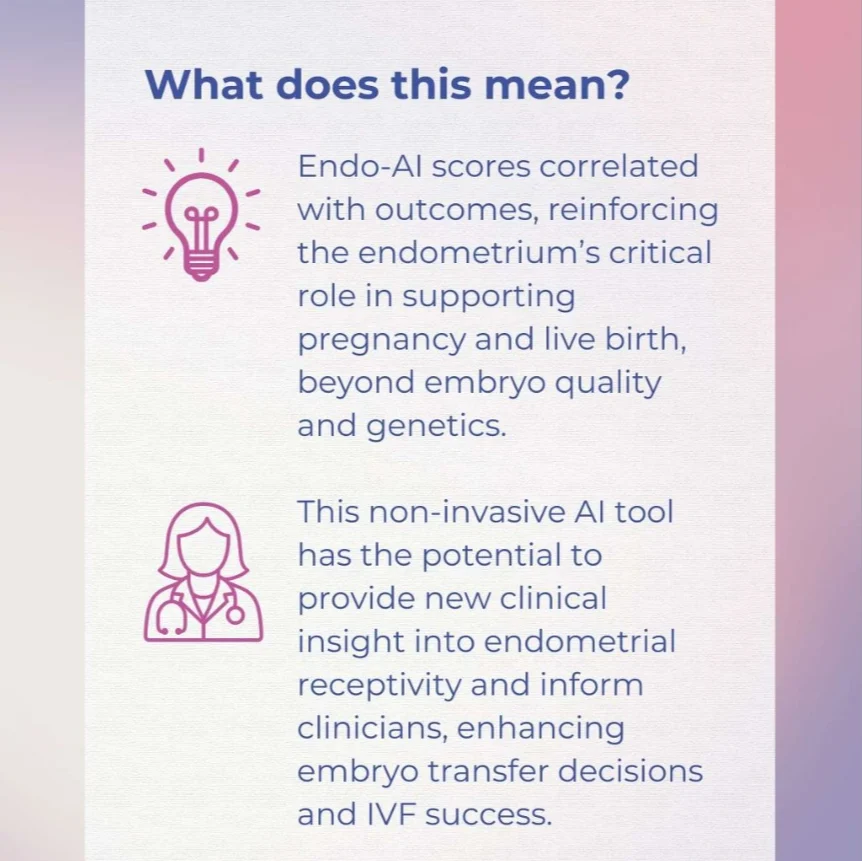 - This endometrial AI model marks a significant step forward – moving beyond visual interpretation to a quantifiable, objective measure of receptivity.