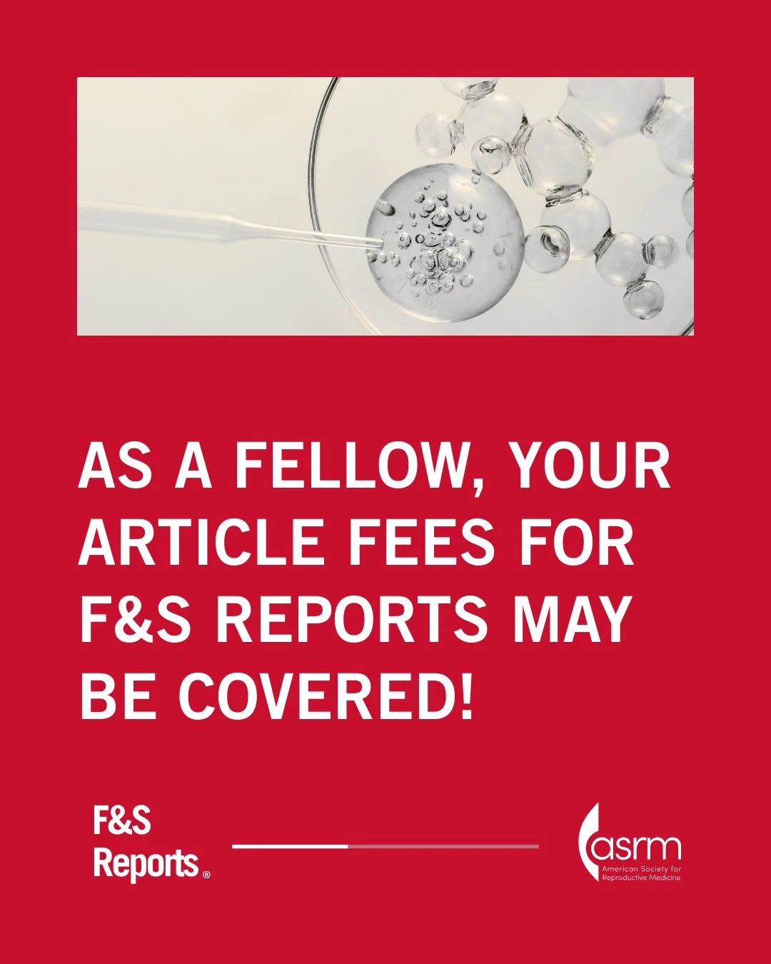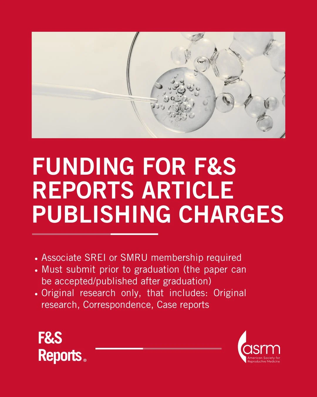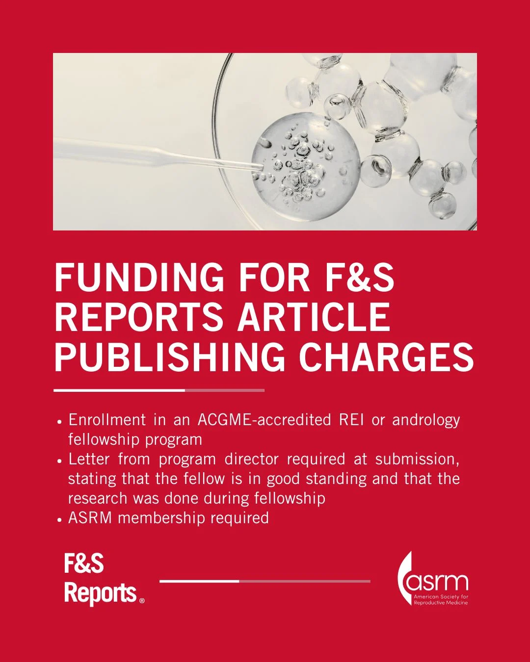 “The ASRM Board of Directors has provided a limited amount of funding to cover the Fertility and Sterility Reports Article Publishing Charge for papers on which the first author is a fellow!