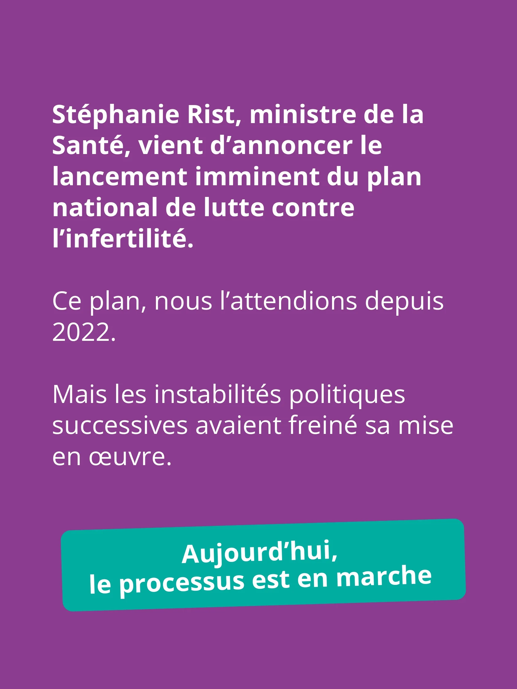 Stephanie Rist, Minister of Health, has just announced the imminent launch of the national plan to combat infertility.