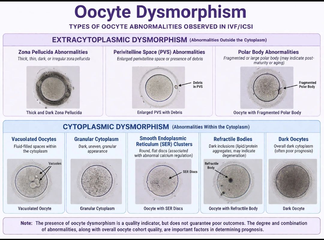OOCYTE DYSMORPHISM: refers to structural abnormalities in oocytes that can impact their quality, fertilization potential, and subsequent embryo development.