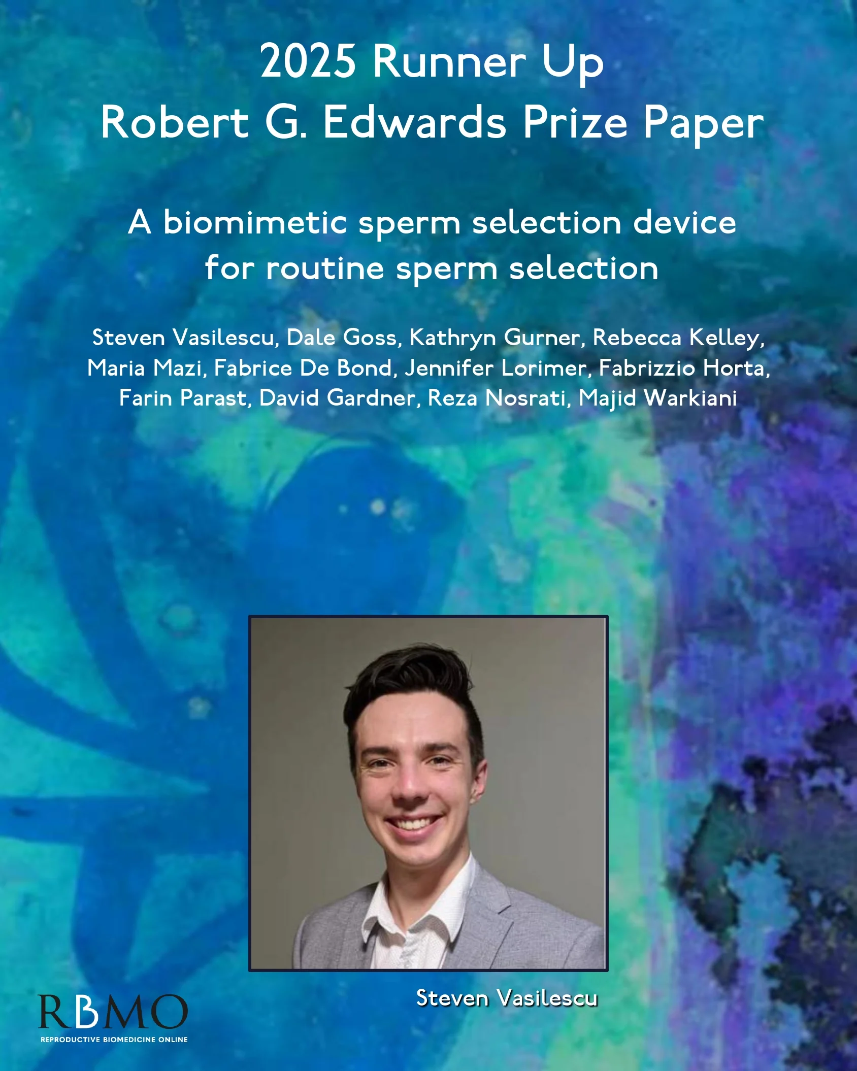 The Runner-Up prize is awarded to ‘A biomimetic sperm selection device for routine sperm selection’ by Steven Vasilescu et al.