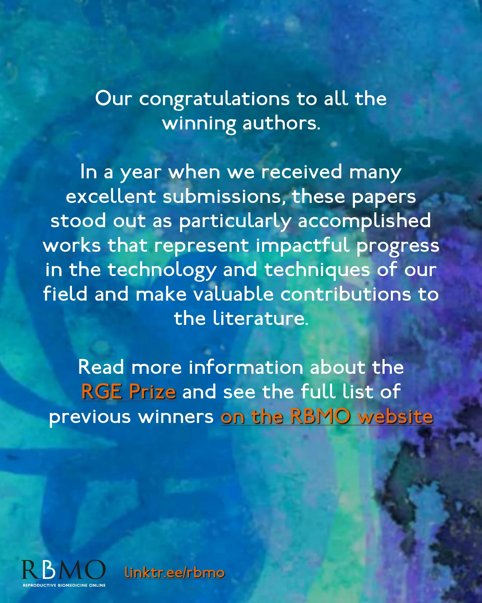 “The editors of Reproductive BioMedicine Online are very pleased to announce the winner and runner up of our annual Robert G. Edwards Prize Paper Award, for the best paper published in Reproductive Biomedicine Online in the previous year.