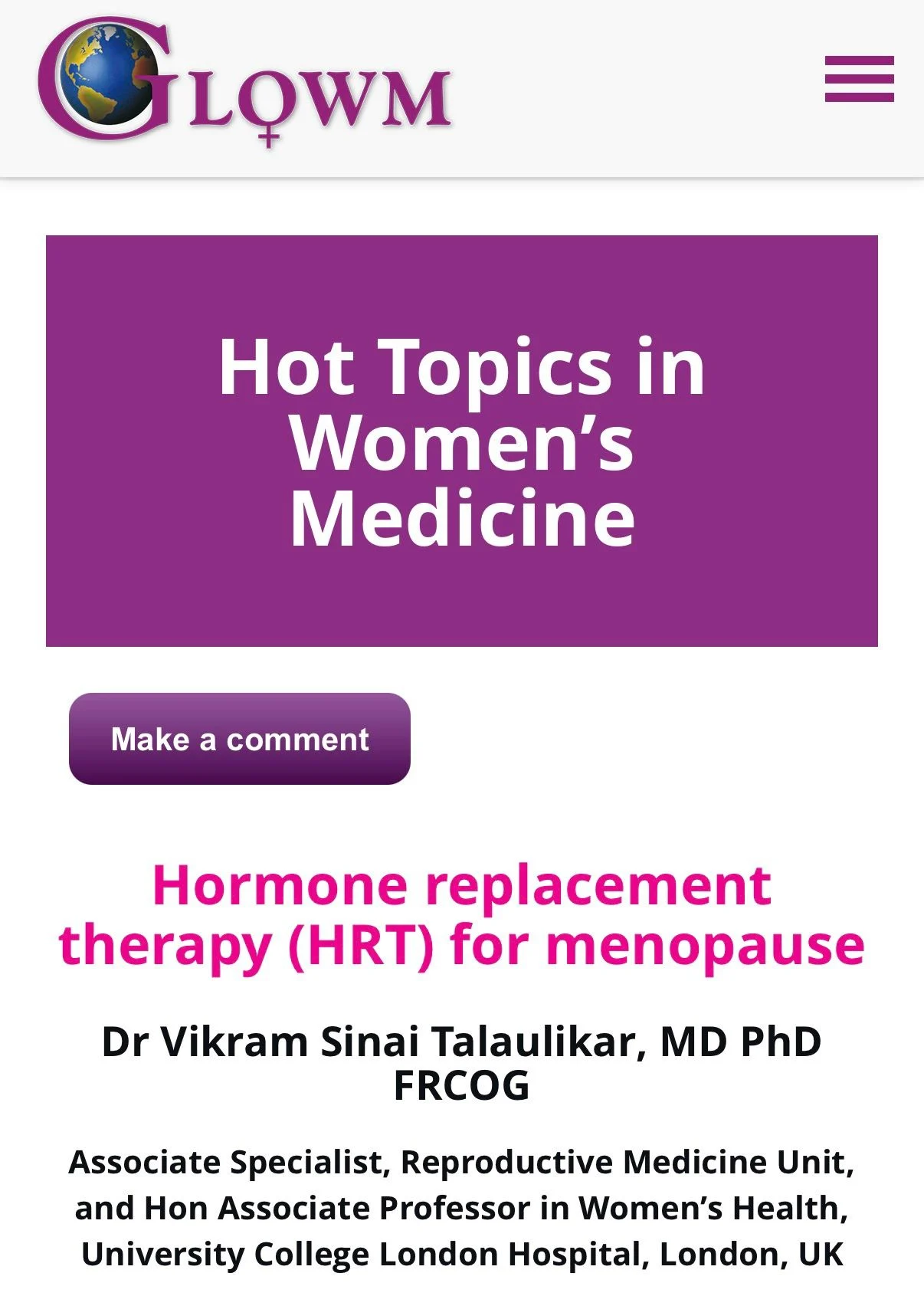 Here is an article on Menopause and Hormone Replacement Therapy which is free to access. Thank you GLOWM for the opportunity.